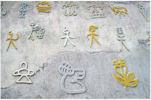 圖為東巴經書象形文字春夏秋冬:春風、夏雨、秋花、冬雪。納西東巴教的突出特點是自然崇拜與多神崇拜,記載于東巴經書的文字有二千四百個左右。記者 劉芳\攝