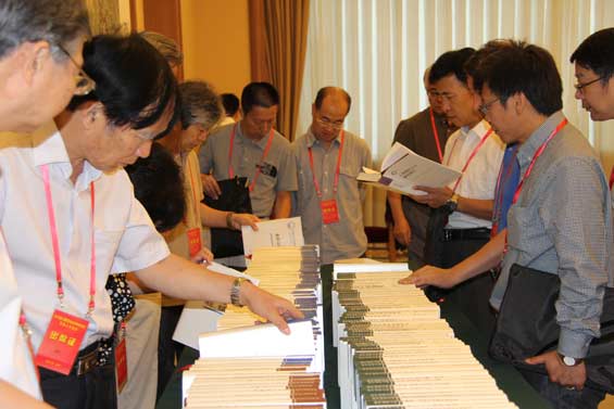 圖為與會專家在翻閱已出版的《成果文庫》作品