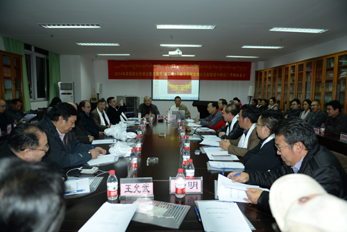西南民族大學新聞網12月8日訊 12月4日,西南民族大學藏學學院索南才讓教授主持的國家社科基金重大項目《藏文世俗法規古文獻整理與研究》在行政樓809會議室舉行開題報告會。校長曾明教授、副校長王永教授出席了報告會。會議由藏學學院根旺副教授主持開題,藏學學院院長萬果教授主持專家評議。出席開題報告會的除了我校科技處、藏學學院、西南民族研究院、研究生院、法學院等單位的主要負責人和課題組成員外,還邀請到了四川省社科聯規劃辦黃兵主任、中國藏學研究中心陳慶英研究員、西藏社科院巴桑旺堆研究員、中國藏學出版社周華社長、四川大學中國藏學研究所副所長石碩教授、青海民族大學法學院多杰教授等著名的專家學者。