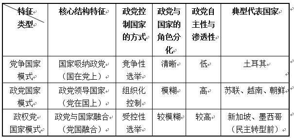 [關(guān)鍵詞]政黨與國(guó)家;關(guān)系模式;政黨綱領(lǐng);政黨組織;政黨斗爭(zhēng)形態(tài)