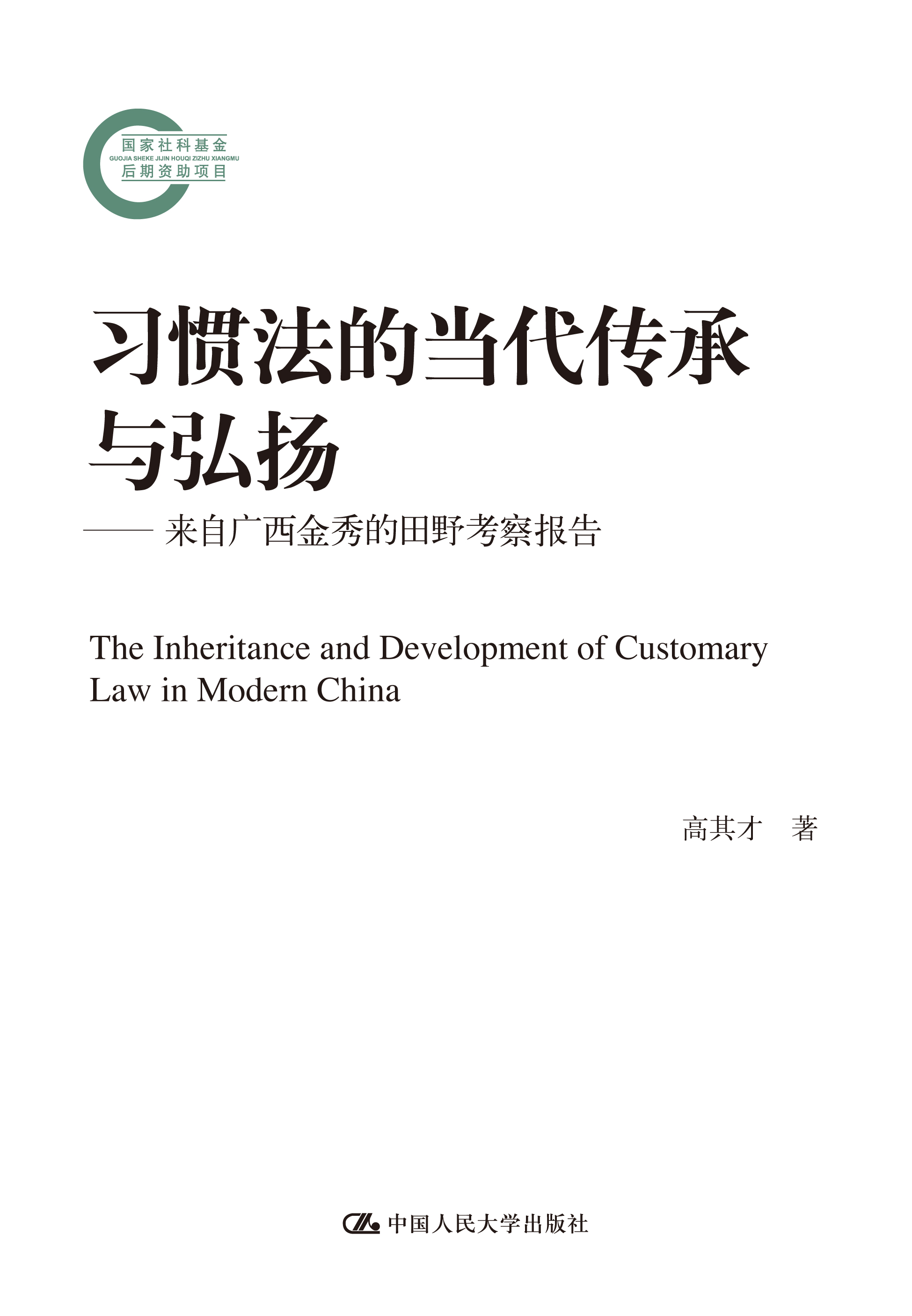 4.《習慣法的當代傳承與弘揚——來自廣西金秀的田野考察報告》(中國人民大學出版社,2015年12月第1版)