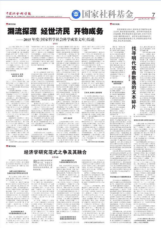 溯流探源 經世濟民 開物成務 ——2015年度《國家哲學社會科學成果文庫》綜述