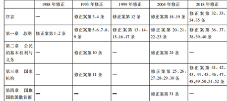 表 1 八二憲法各章節五次修改情況一覽表
