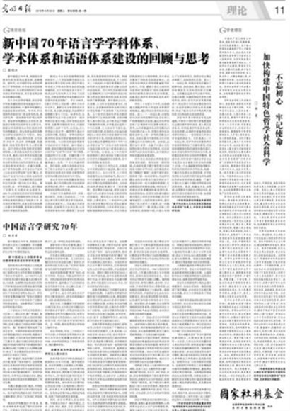 新中國70年語言學學科體系、學術體系和話語體系建設的回顧與思考