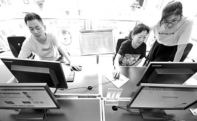湖北襄陽高新區東風社區電子閱覽室為居民提供免費線上閱讀服務。新華社發