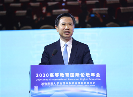 鐘登華代表教育部對論壇的召開表示祝賀并指出,世界正面臨百年未有之大變局,全球高等教育專家與學者匯聚國際論壇,共同探討后疫情時代高等教育的變革與發展,意義深遠。結合學習黨的十九屆五中全會精神,圍繞高等教育高質量發展,他提出兩個觀點:一是要深刻認識發展成就,進一步堅定高等教育制度自信。我國高等教育在短時間內建成了世界最大規模的高等教育體系,有力支撐了我國的經濟快速發展奇跡和社會長期穩定奇跡,人民立場更加突出,服務國家的能力和水平顯著增強,治理能力不斷提升。高等教育發展必須堅持扎根中國、融通中外,更加堅定中國特色社會主義高等教育的制度自信。二要聚焦教育強國建設,提升服務構建新發展格局的能力和水平。構建新時代高等教育高質量發展體系,需把握6個關鍵點。一是明確方位、錨定目標。二是體現改革創新根本動力。三是堅持問題導向。四是堅持目標導向。五是堅持系統觀念。六是加強治理體系和治理能力現代化建設。和平與發展是時代主題,人類命運共同體理念深入人心。中國政府將一如既往地支持各國高等教育交流與合作。