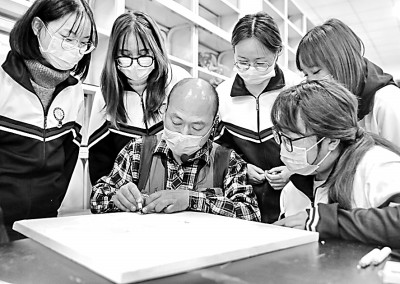 河北建材職業技術學院大學生學習雕刻工藝。曹建雄攝/光明圖片