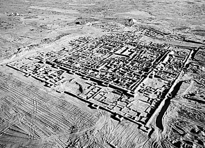 馬爾吉亞那綠洲中最大的甘諾爾遺址由南北兩個土丘組成,圖為甘諾爾北丘鳥瞰圖。資料圖片