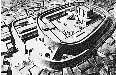 在之后的捷姆迭特·那色時期(約公元前3100年—前2900年)和蘇美爾早王朝時期(約公元前2900年—前2350年),“白廟”大臺基、小神廟的設(shè)計得到進(jìn)一步發(fā)展,成為宏偉、高聳的塔廟,各城邦紛紛建起幾十米高的塔廟,形成了神廟城市的獨特景觀。早王朝晚期海法吉遺址的月神廟建在一座面積超過8000平方米的臺基上,神廟面積不足800平方米,廟前是一個超過2000平方米的廣場,周圍是供祭司居住的庭院,外側(cè)的圍墻將塔廟區(qū)與居民區(qū)分隔開來,體現(xiàn)了宗教區(qū)域與世俗區(qū)域、祭司與民眾的徹底分離。