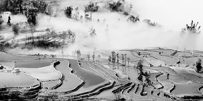 云南省紅河哈尼族彝族自治州是哈尼梯田的故鄉。崇山峻嶺之中的哈尼梯田,歷經千年開墾而成,處于多元的系統循環之中。哈尼族的寨子大多建在向陽、有水、有林,海拔在1000~2000米的半山腰。森林在上,村寨居中,村寨之下依地勢造田,層層梯田由此綿延至河谷山麓,河水升騰為水霧,繼而凝結為雨,落在森林,再流入村寨、灌溉梯田、流進河谷,從而形成“森林—村寨—梯田—河谷”四素同構的人與自然高度協調、可持續發展、良性循環的生態系統。