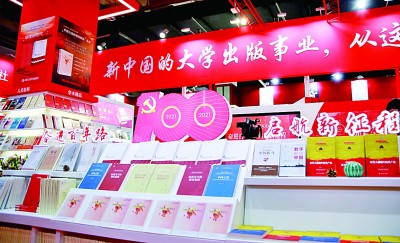 2021北京圖書訂貨會上的慶祝建黨100周年主題圖書展區(qū)。新華社發(fā)