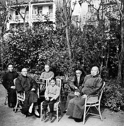 1947年,馬敘倫(左三)與包達三、陳叔通等友人在上海。