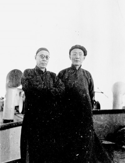 1948年,華中輪上的馬敘倫(左)和郭沫若。 周海嬰攝