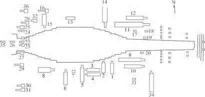 即與地下墓室開口同屬一個層面。這些大型陪葬坑大體以墓室為中軸線,南北對稱排列,南側數量略多于北側,有的成雙并列而排,有的單處一地,但大體上可看出一些規律。