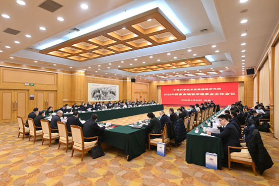 2022年1月20日,2022年戰略院國家高端智庫理事會全體會議在北京召開。會議由科技部黨組書記、部長、戰略院國家高端智庫理事會理事長王志剛主持,科技部黨組成員、副部長、戰略院國家高端智庫理事會副理事長李萌,中國工程院院士、中國工程院原院長、戰略院國家高端智庫學術委員會主任周濟,中宣部全國社科工作辦副主任操曉理等出席會議。戰略院國家高端智庫理事會、學術委員會成員,戰略院高級顧問,科技部國家高端智庫研究聯合體成員單位主要負責同志,戰略院部門負責人以上干部參會。