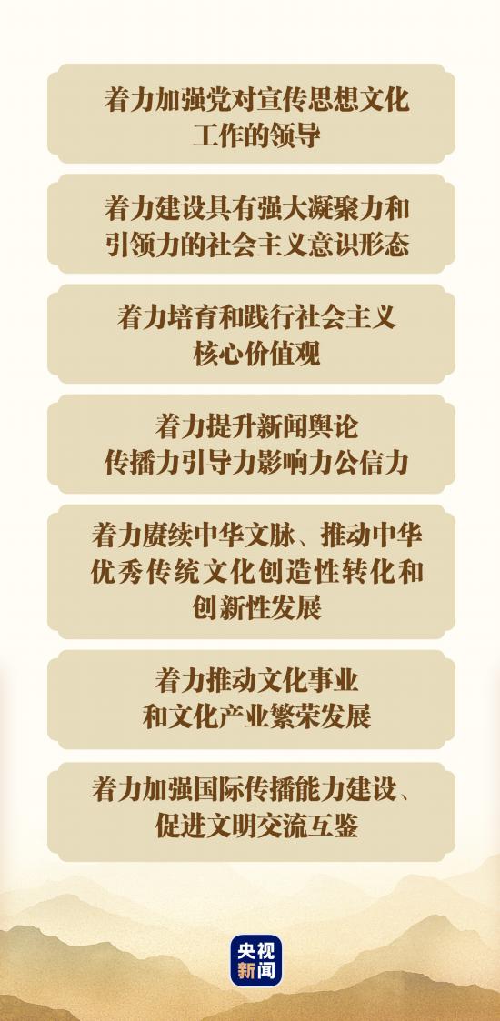 這次對宣傳思想文化工作的重要指示中,總書記再次強調這一要求,并對新時代新征程宣傳思想文化工作如何展現新氣象新作為,提出了“七個著力”。