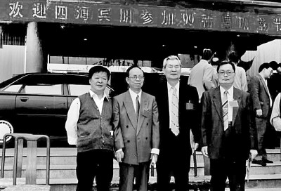 竺岳兵(左一)與學者傅璇琮(左二)、周勛初(左三)、郁賢皓在一起。
