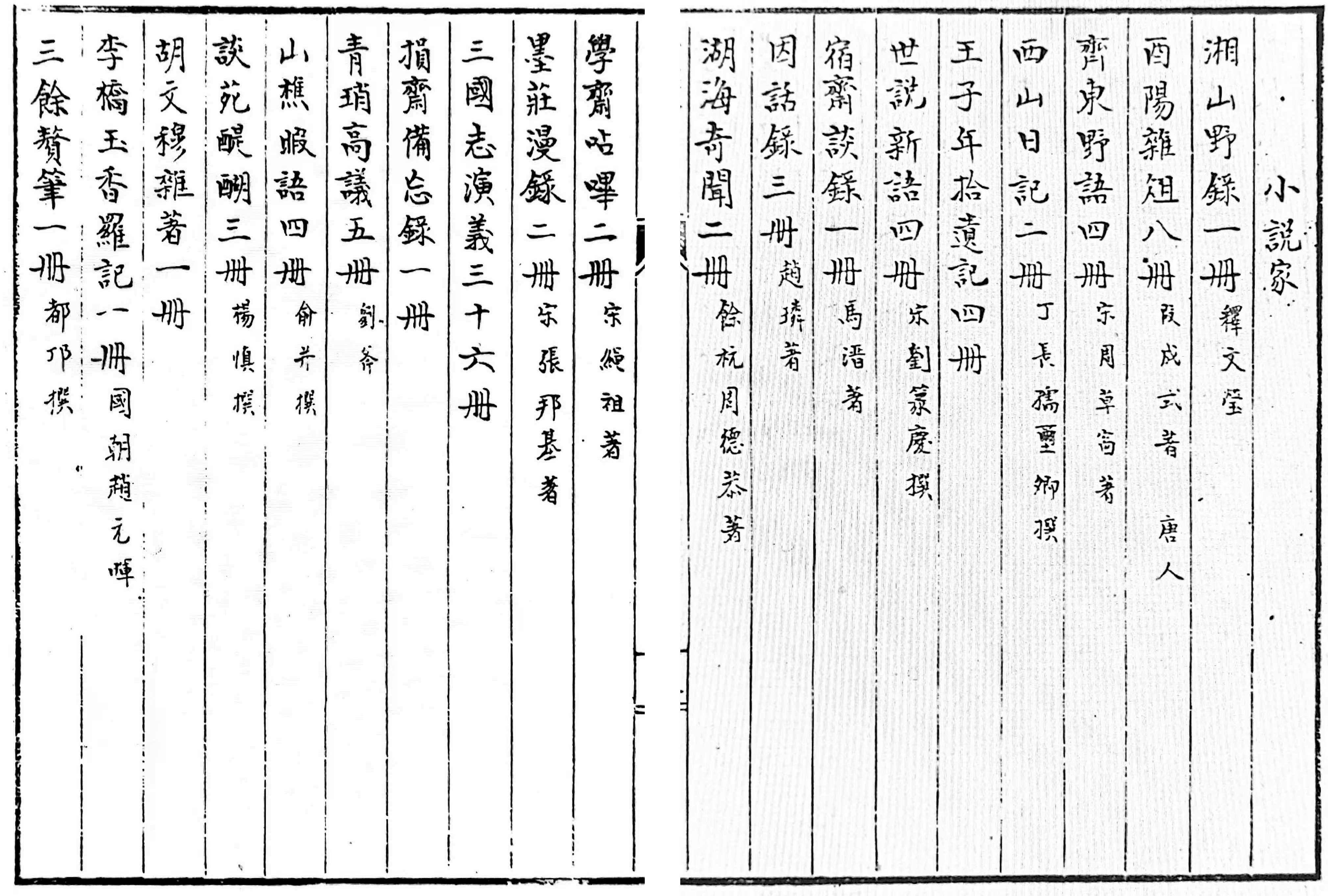 以《文淵閣書目》《國史·經籍志》《嘉靖建陽縣志·書坊書目》《續文獻通考·經籍考》《寶文堂書目》《百川書志》《澹生堂藏書目》《笠澤堂書目》為代表的明代各類書目,在承繼傳統目錄學知識體系的同時,專置“小說(家)類”進行類別改良與作品歸并的變革探索,呈現出既著錄子部文言小說,亦著錄《水滸傳》《三國志通俗演義》《西游記》等通俗小說的新變。