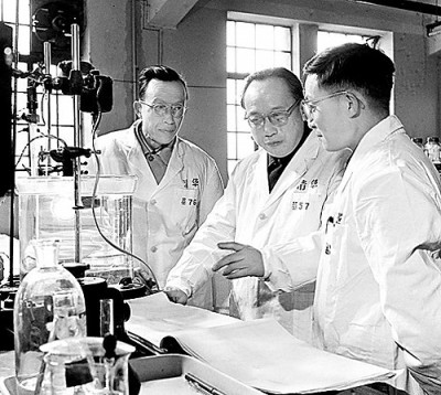 20世紀70年代,錢偉長(中)和清華大學同事在實驗室。圖片由作者提供