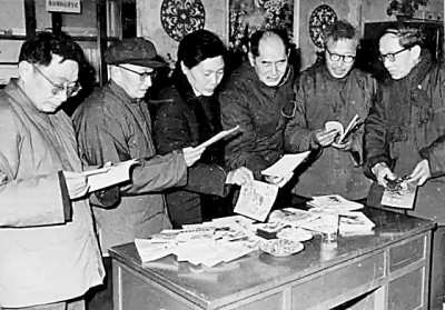 1979年2月,在《少年文藝》編輯迎春座談會上,賀宜、陳伯吹、茹志鵑、徐遲、任溶溶、杜宣(從左至右)在一起。