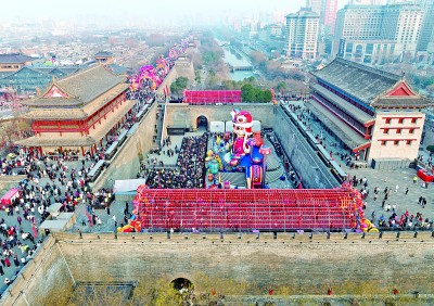春節假期,游客在西安城墻永寧門觀光游覽。新華社發