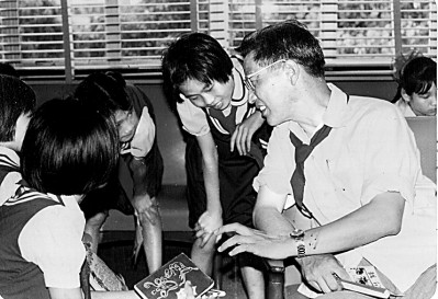 20世紀(jì)80年代,蔣風(fēng)和小學(xué)生談寫作。