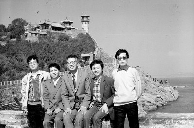 1988年,蔣風(fēng)(中)參加全國兒童文學(xué)發(fā)展趨勢(shì)研討會(huì),與他的研究生吳其南、王泉根、方衛(wèi)平、鄒亮相聚在煙臺(tái)。