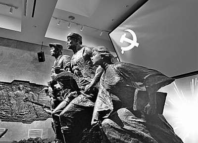 中共四大紀念館序廳內的主題雕塑。新華社發