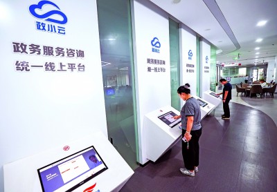浙江省嘉興市南湖區政務服務中心,群眾在“政小云”政務服務咨詢統一線上平臺上咨詢辦理事項。新華社發