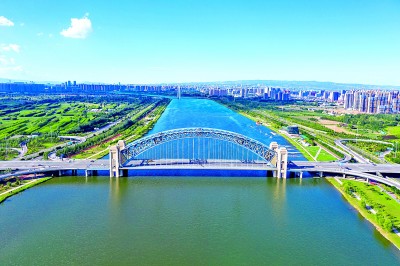 通過全流域、全方位、全系統治理,如今的汾河一川清流,兩岸錦繡。圖為汾河太原段的晉陽橋。新華社發