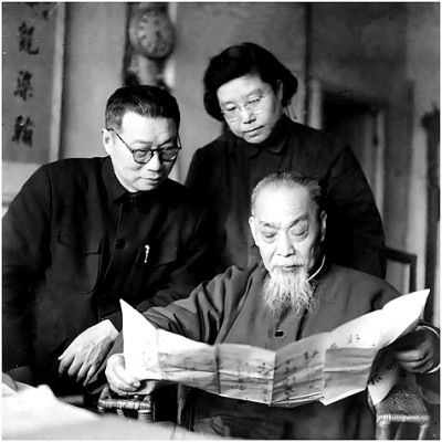 1963年,陳垣(前)、柴德賡(左)、劉乃和在一起。 柴念東提供