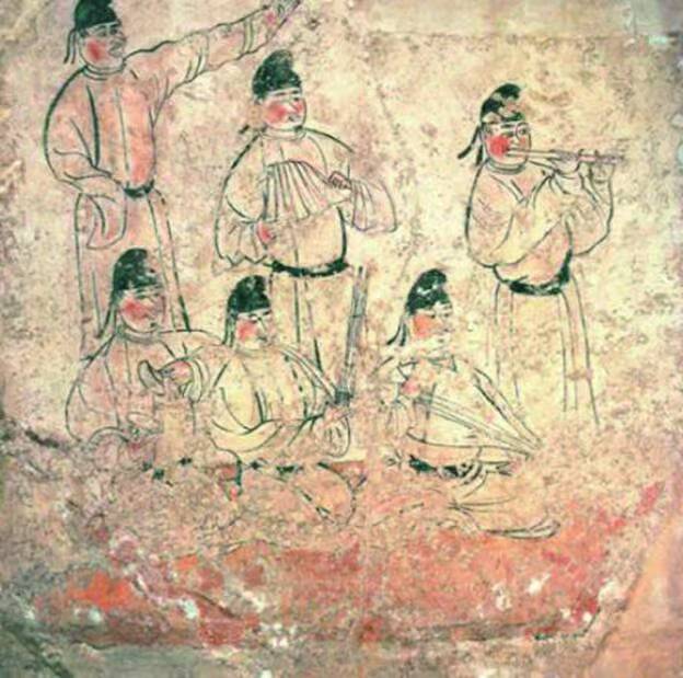 陜西省西安市蘇思勖墓樂舞圖(局部)(圖片來源于羅文利:唐墓壁畫全集·陜西卷》卷3,三秦出版社 2023 年版第 837 頁。)