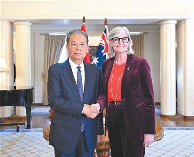 同萊恩斯、迪克會談時,趙樂際表示,中國全國人大愿同澳聯邦議會落實兩國領導人重要共識,密切立法機構各層級交往,發揮專門委員會和人大代表、議員的特長優勢,加強對話交流,增強合作的穩定性和實效性,為兩國務實合作提供法律保障。趙樂際介紹了中共二十屆四中全會精神以及對外開放、擴大內需等情況,表示兩國立法機構可就涉外立法、營造良好營商環境等開展交流互鑒。