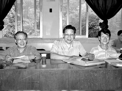 樓宇烈(中)和學者方立天(左)、牟鐘鑒在一起。